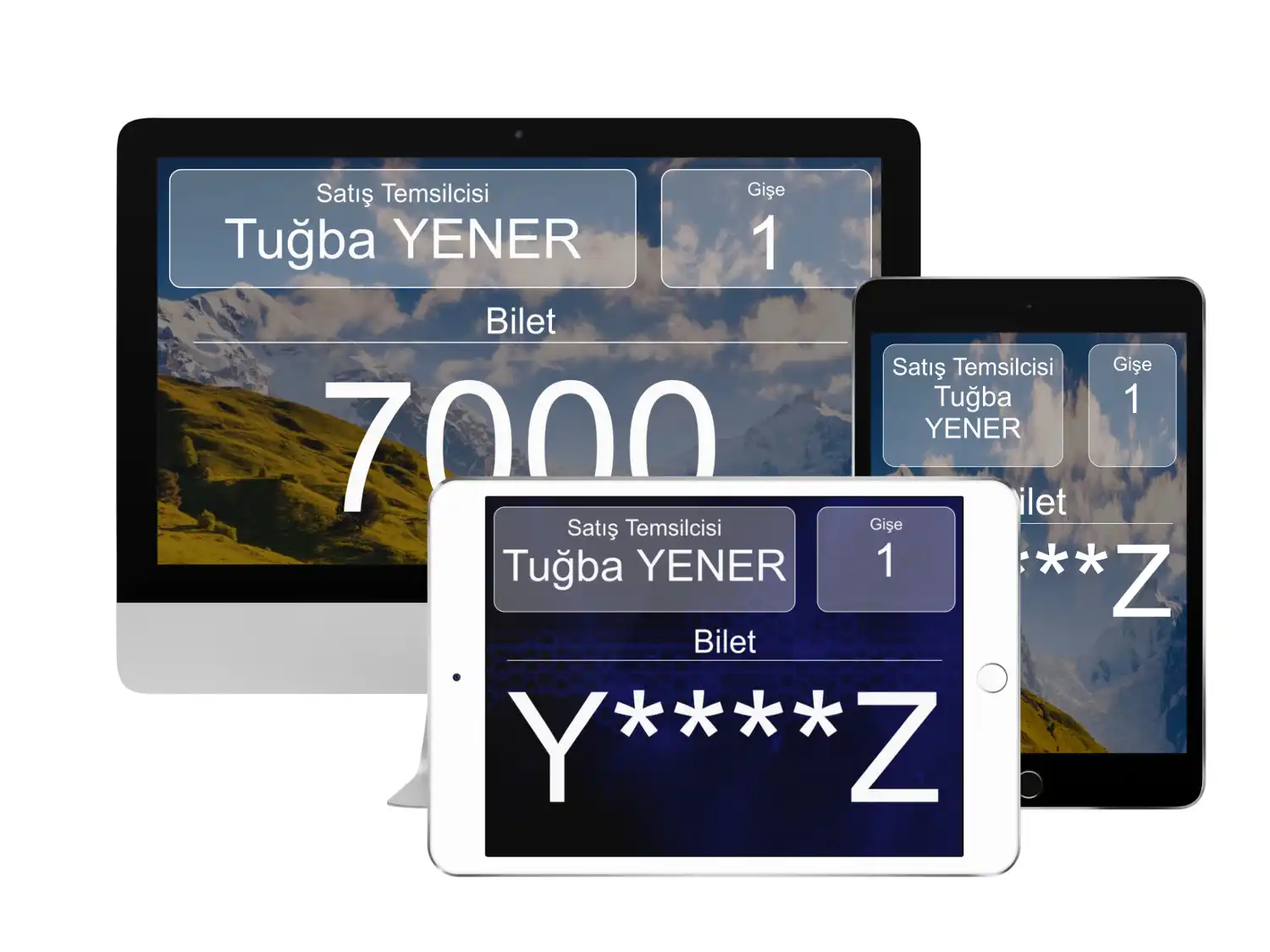 Bilet nömrəsinə ənənəvi növbə idarəetmə sistemlərində olduğu kimi baxa və ya müştərilərinizin adını, soyadını, ləqəbini, dövlət nömrə nişanını və ya vergi nömrəsini ekranlarda göstərə bilərsiniz.