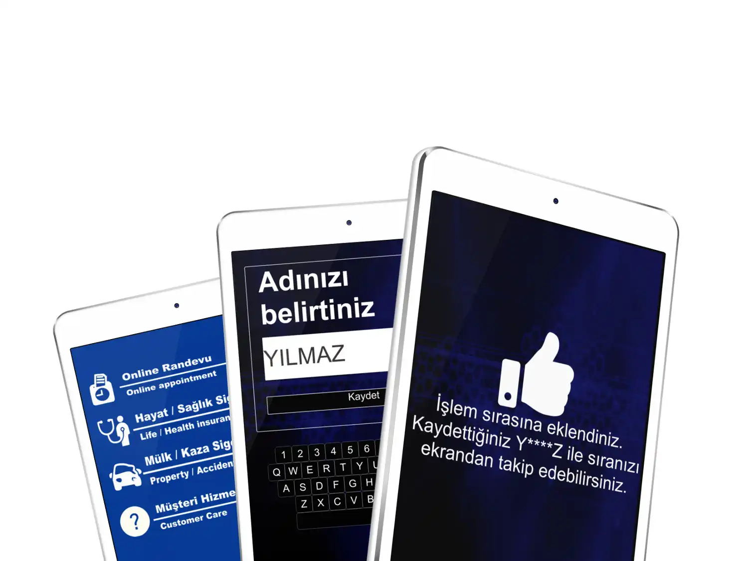 Növbə nömrələrini ənənəvi növbə idarəetmə sistemlərində olduğu kimi müştərilərinizə paylaya və ya SMS və ya ad, vergi nömrəsi, soyad kimi müştəri məlumatları ilə növbə idarəetmə sisteminə daxil edə bilərsiniz.