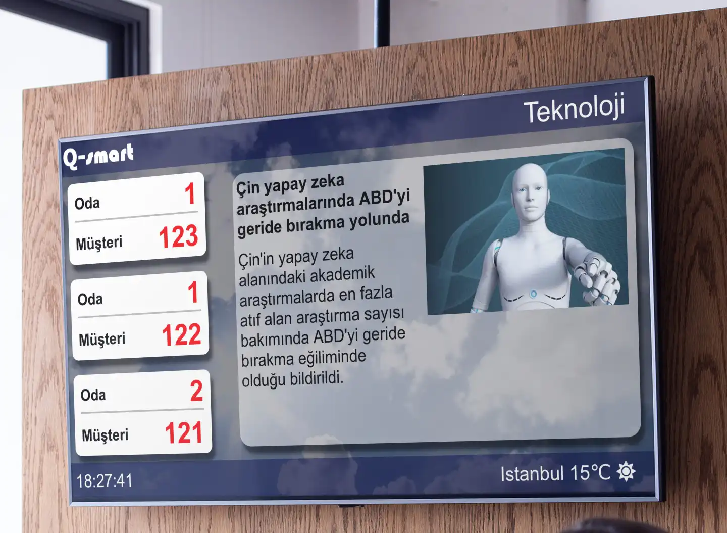 İstənilən marka Smart TV, Android TV Box, Apple TV, Amazon TV Stick və ya kompüteri, bir sözlə, internet brauzeri olan istənilən məhsulu növbə idarəetmə sisteminin əsas marşrut ekranına çevirə bilərsiniz.