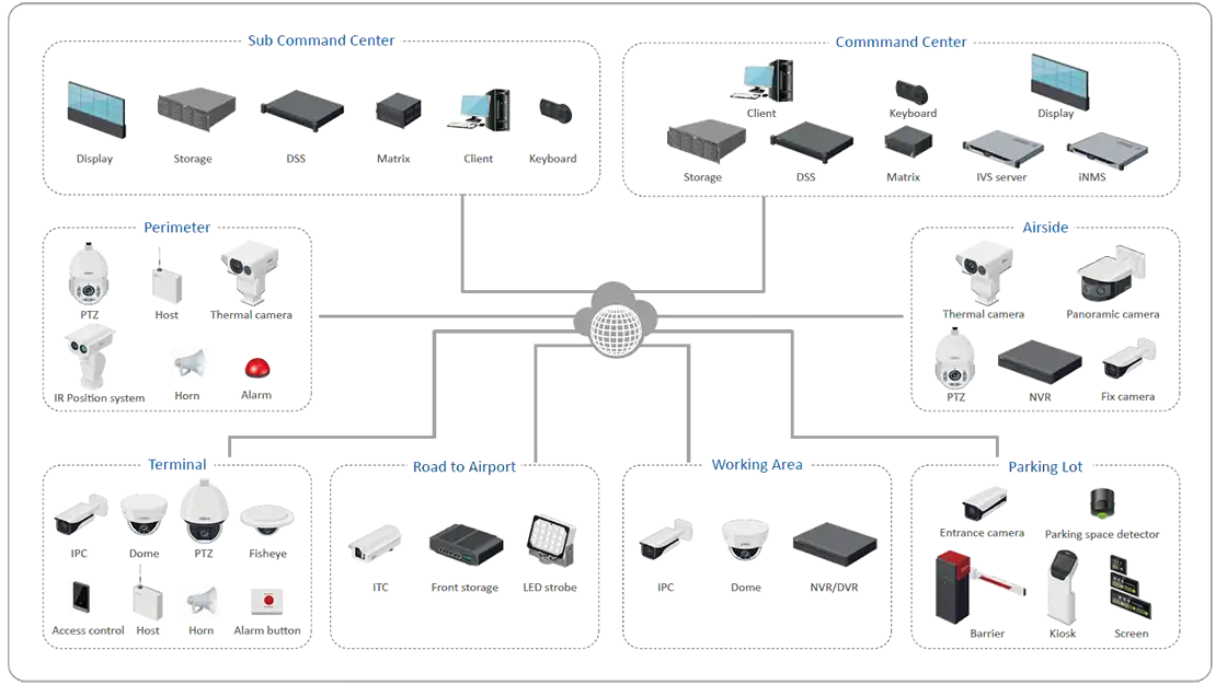 Ənənəvi təhlükəsizlik sisteminə əsaslanan Dahua hava limanının təhlükəsizlik həlli yeni innovasiyalarından tam istifadə edir və böyük məlumatların idarə edilməsində nou-hau birləşdirir. Bu, hava limanını nəqliyyat vasitələrinin, sərnişinlərin və baqajın idarə olunmasından daha ağıllı və daha təhlükəsiz edir.