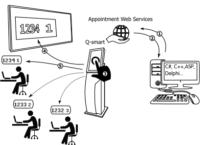 Q-smart görüş sistemi hazır inteqrasiya olunmuş veb server və veb xidmətləri ilə təklif olunur. Randevuların əlavə edilməsi, görüş statusu, görüşlərin silinməsi, görüş məlumatlarının yenilənməsi, qalan görüşlərin sayı, görüşlərin paylandığı xidmətlərdən sistemlə birlikdə istifadə edərək, öz proqram təminatınızdan görüş sistemində istənilən əməliyyatı həyata keçirə bilərsiniz.